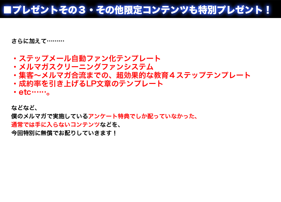 ただし、メールを使ってお渡しする内容はお約束しますのでご安心下さい。