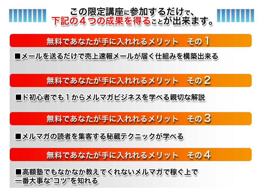 "一度仕組みを作れば安定収入を得続けるメルマガビジネス講座"